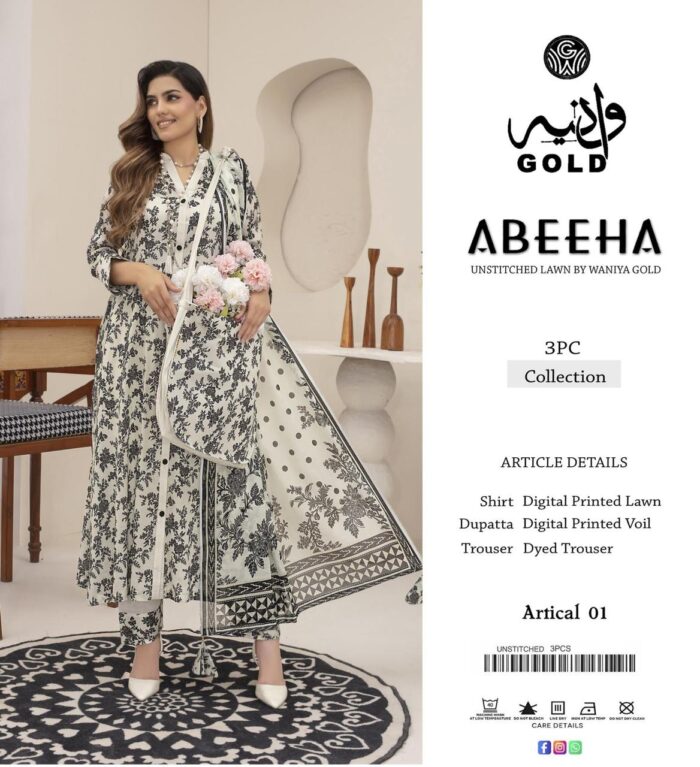 ABEEHA UNSTITCHED LAWN BY WANIYA GOLD